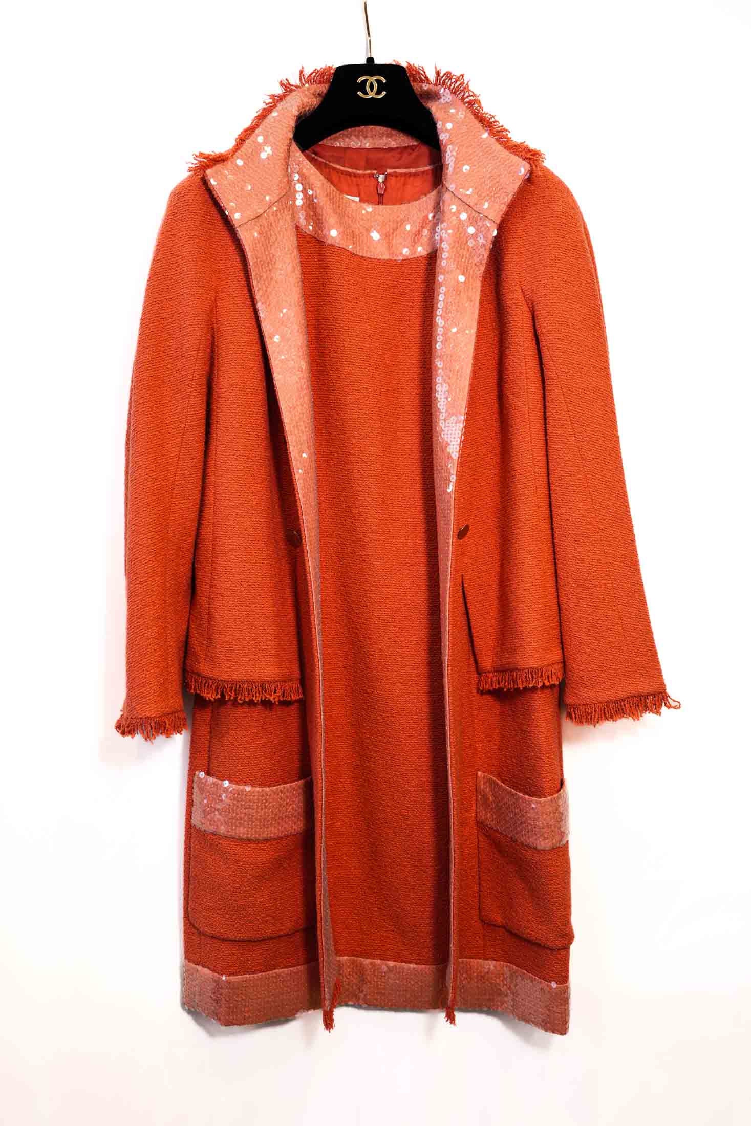 Ensemble Robe Veste CHANEL en tweed de coton orange
