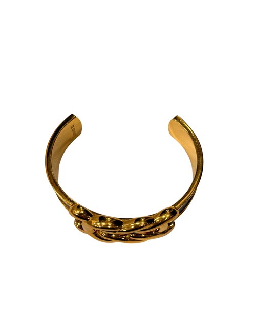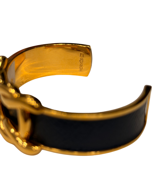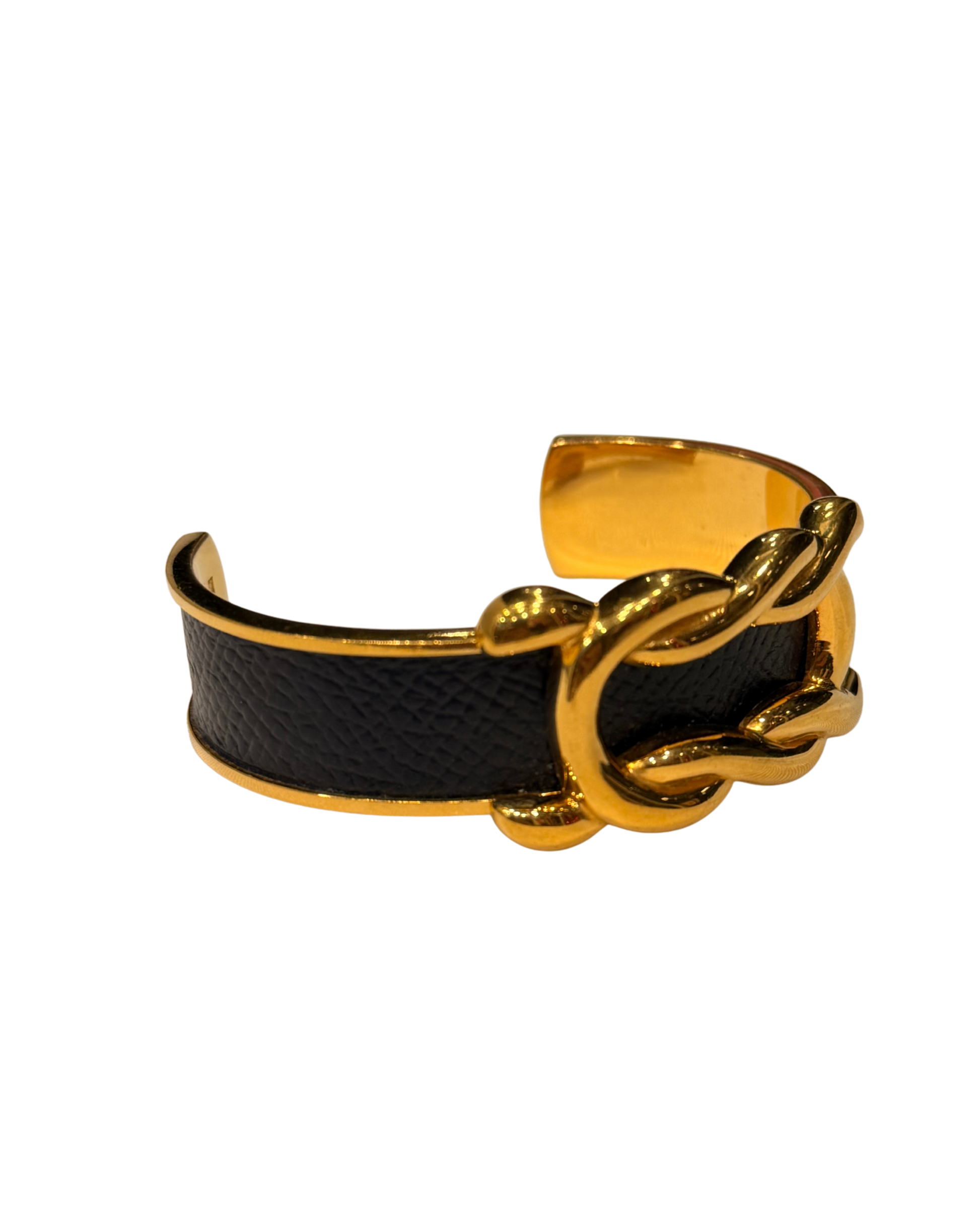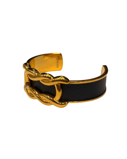 Bracelet Hermès en cuir noir en très bon état général, présente des micros rayures sur la partie métallique.