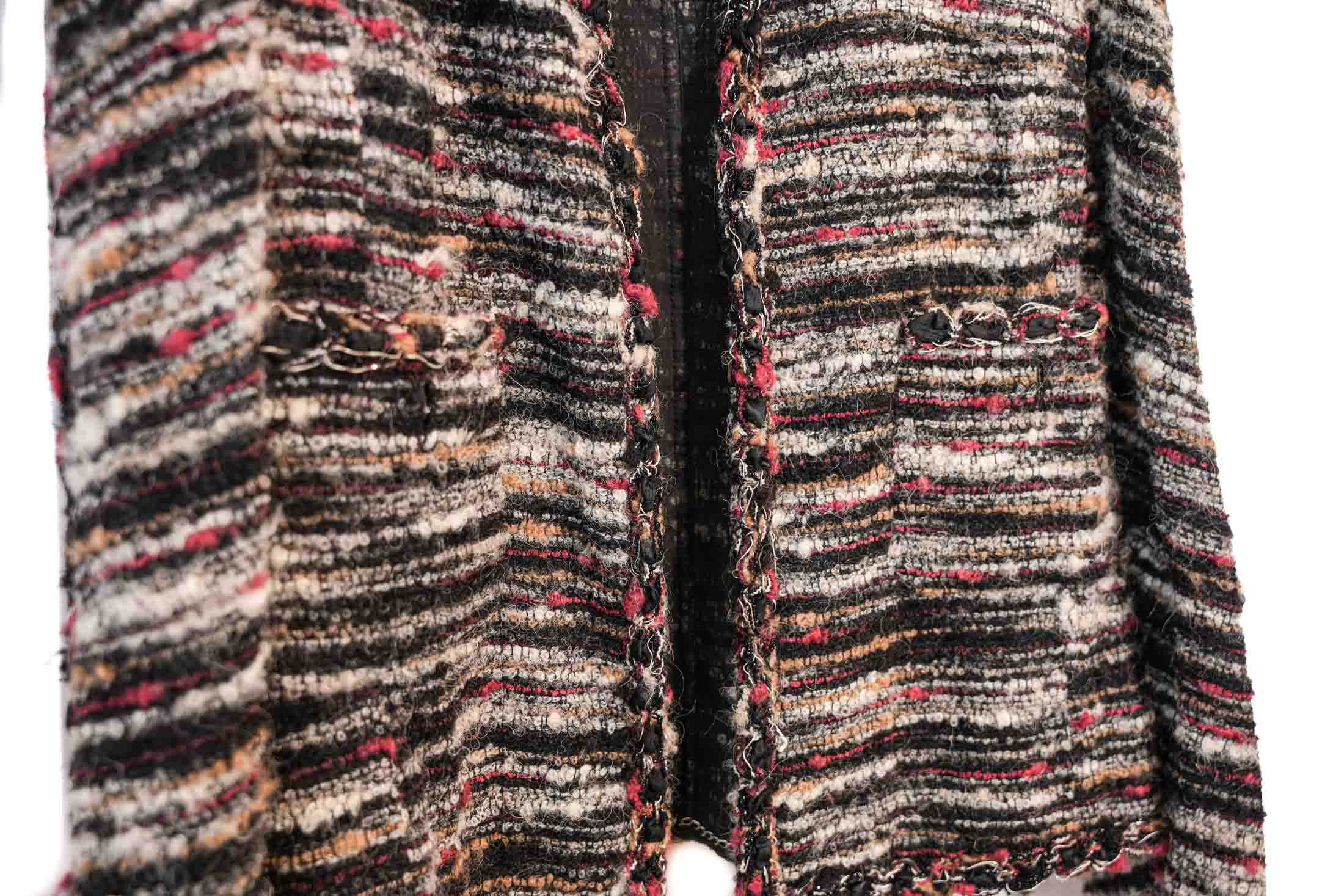 Veste CHANEL en tweed multicolore. Fermeture par des crochets. Deux poches à la taille.