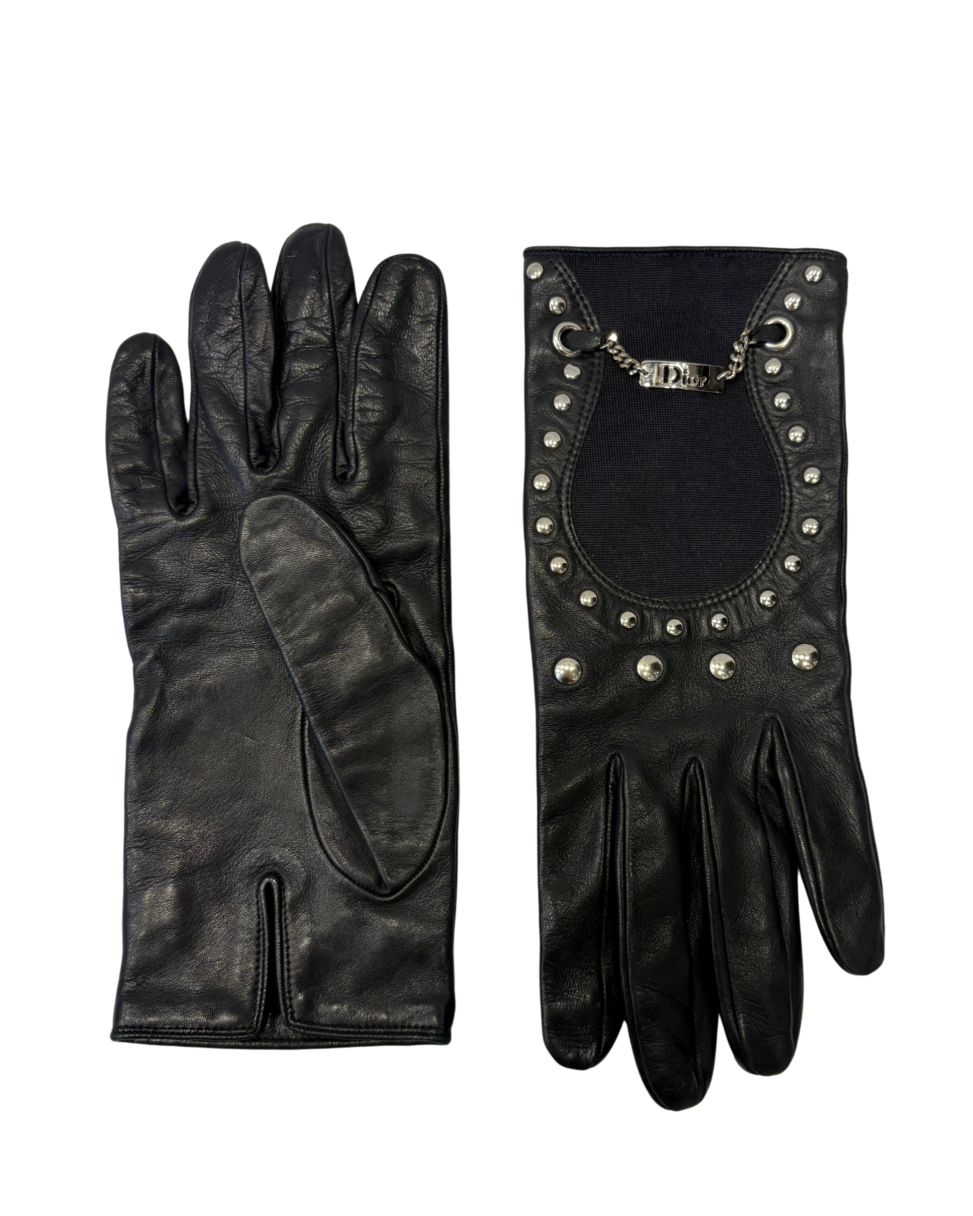 Magnifique gants Dior en cuir noir en très bon état. Taille 7.5