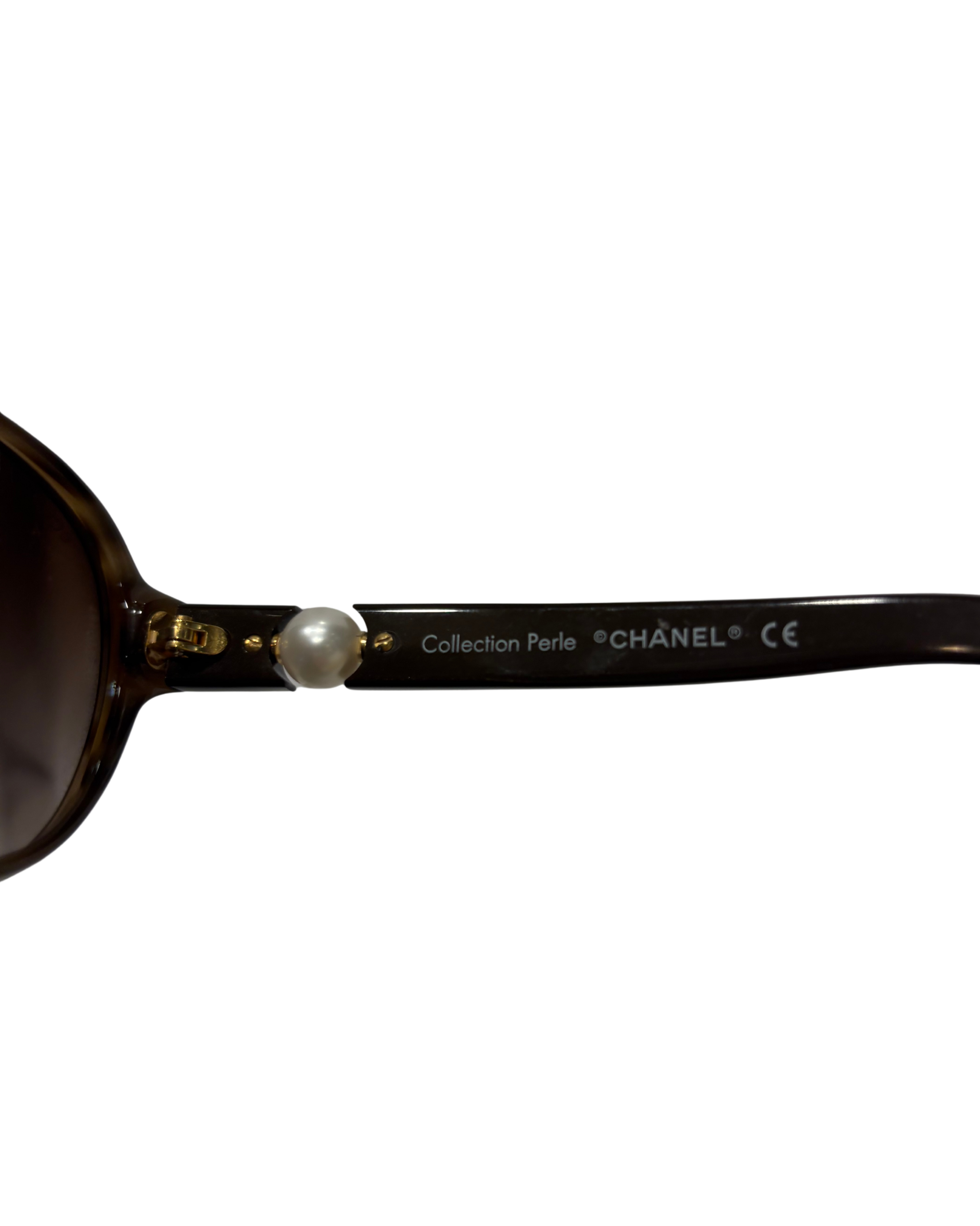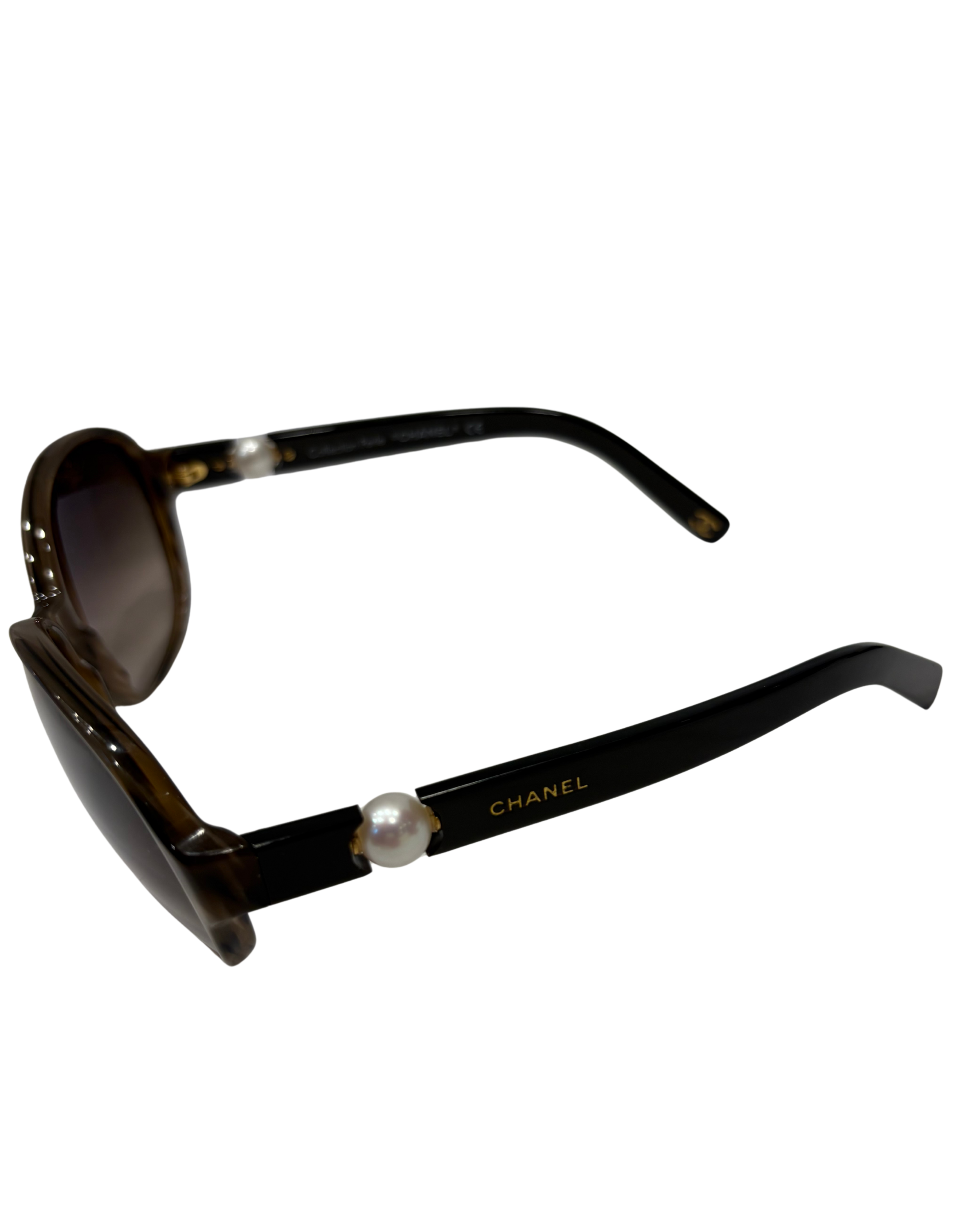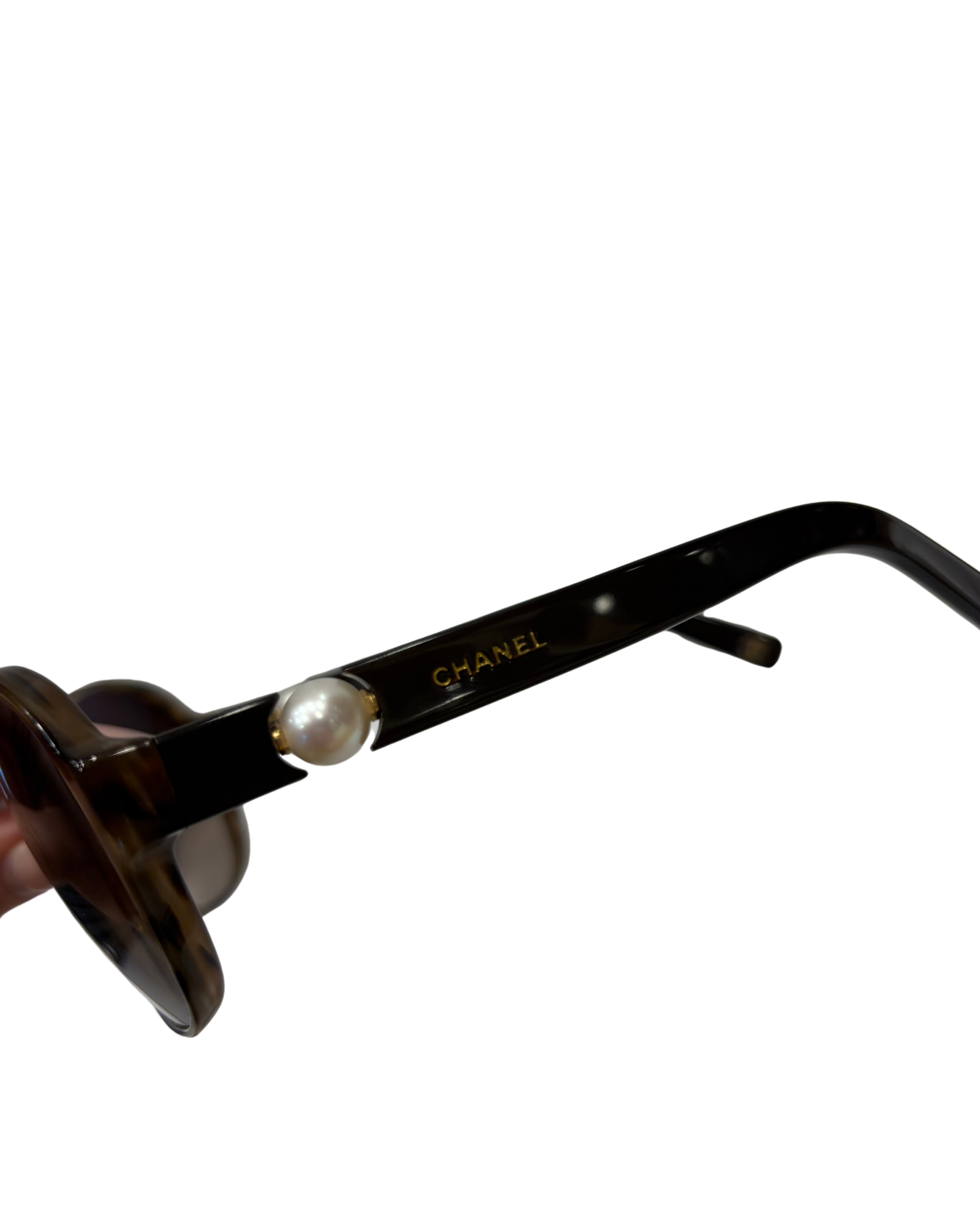 Lunettes de soleil Chanel en très bon état général avec perle.