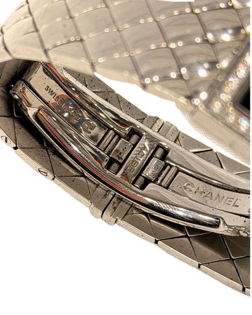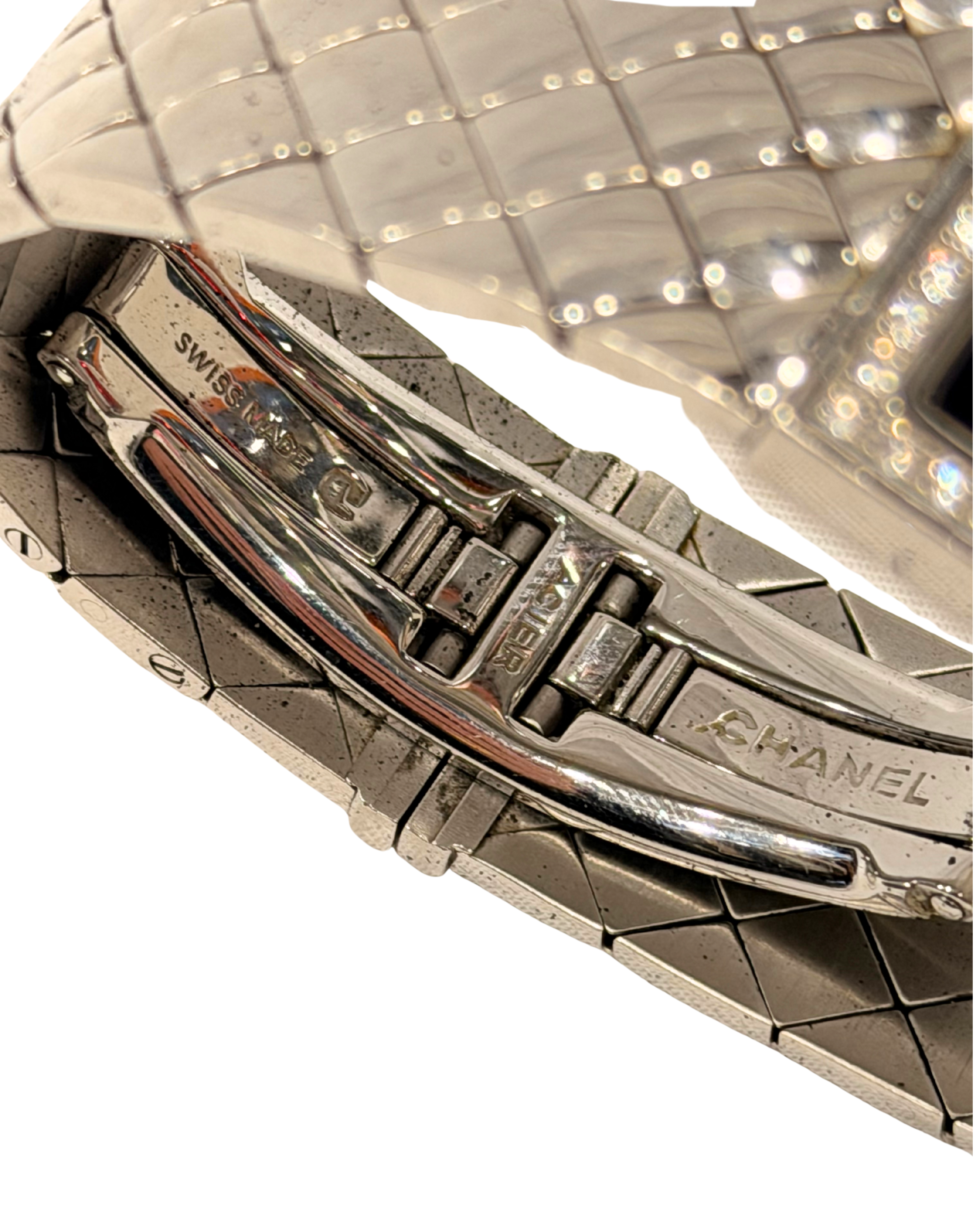 Bracelet en acier à effet matelassé, boucle papillon en acier.