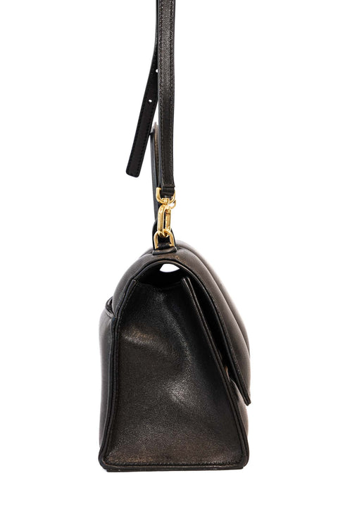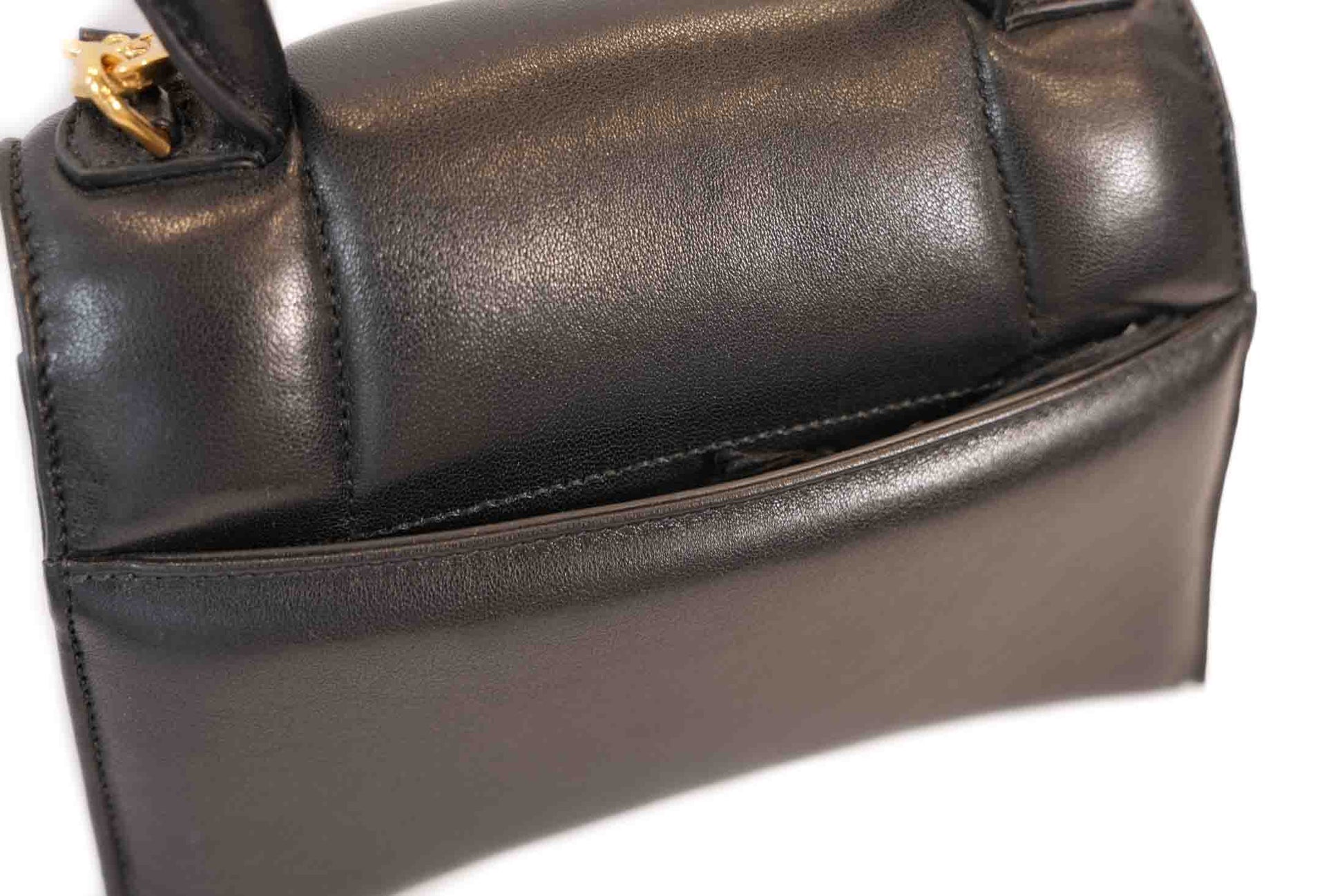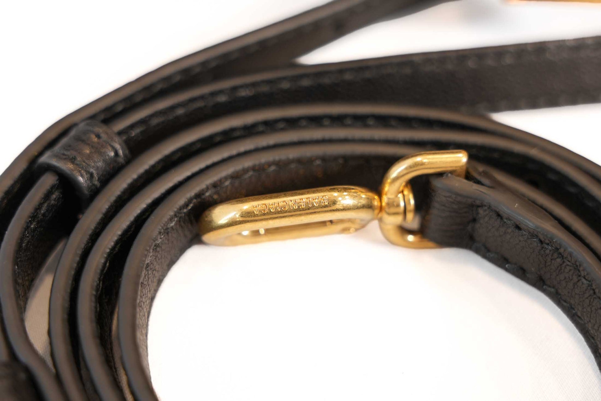 Sac BALENCIAGA modèle Hourglass en cuir de veau box noir brillant. Petit modèle avec bandoulière.