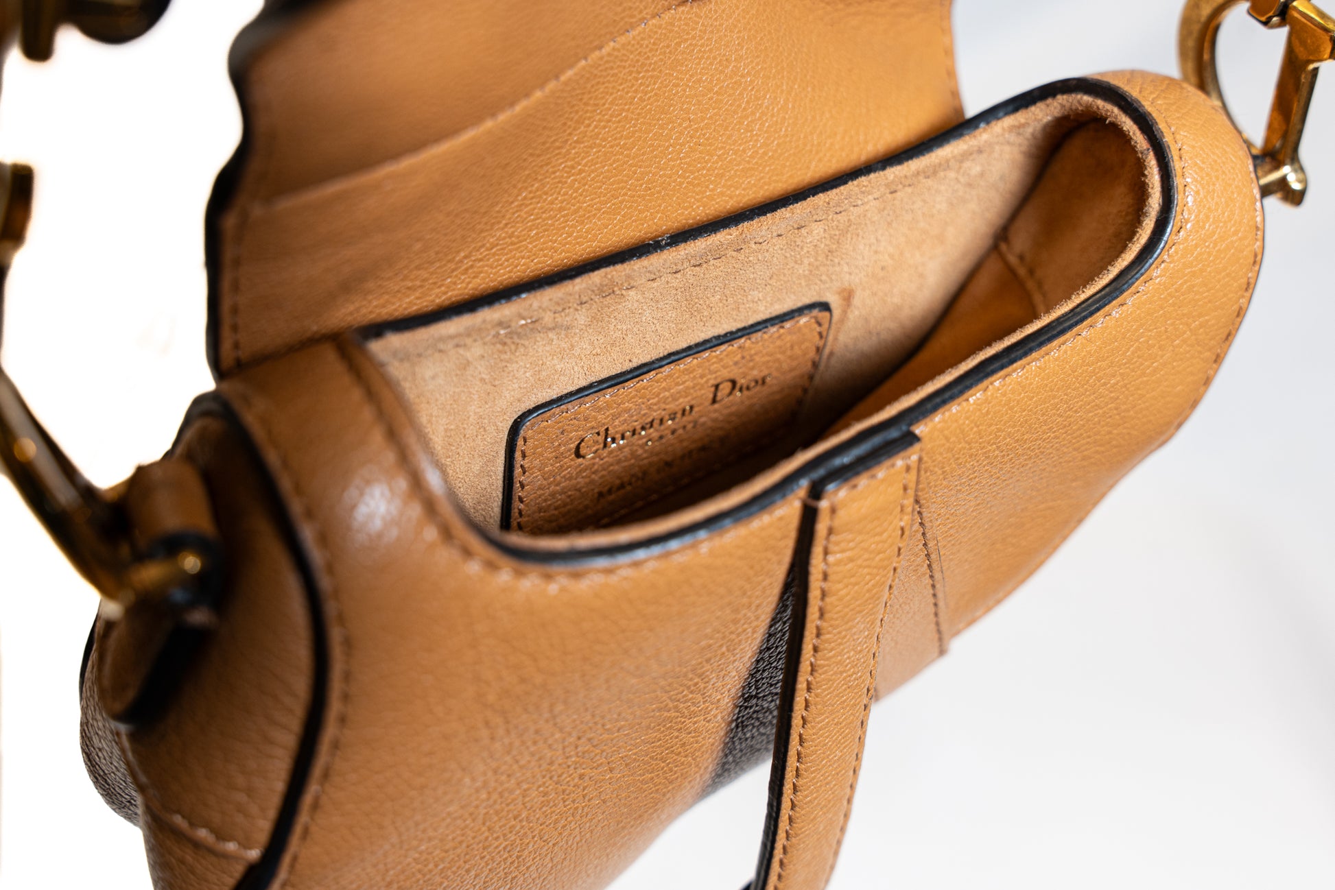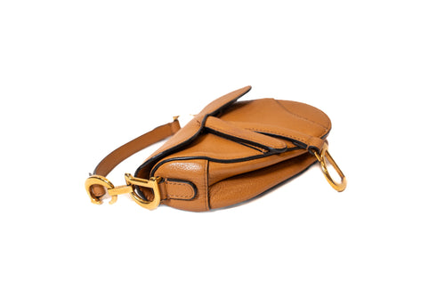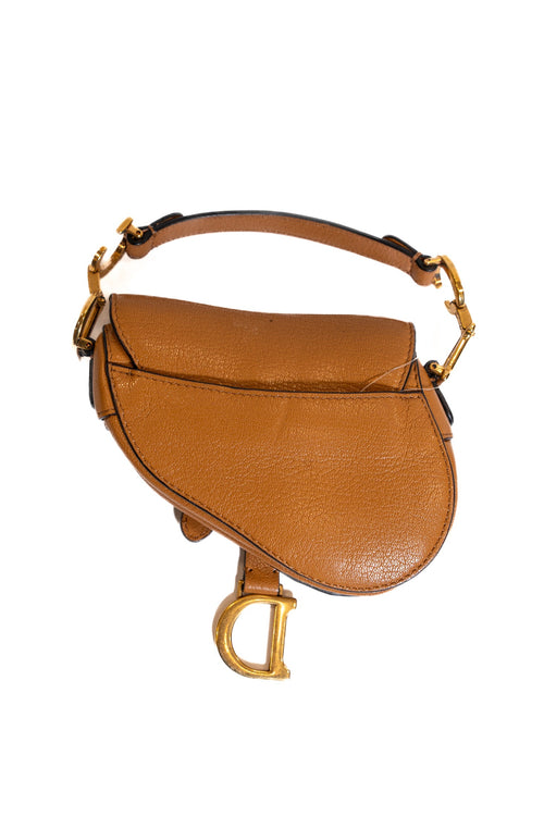 Micro sac Saddle DIOR en cuir gold. orné de finitions en métal doré cuir vielli.